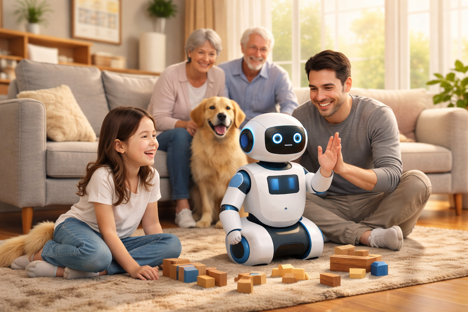 家庭陪護ロボットは、高齢者や子どもを見守りながら、会話や簡単なサポートを通じて日常生活を支えます。